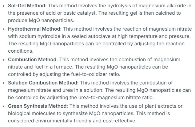 Ok, so, to make what they are calling a magnesium supplement, they pick one of those four, then they perform the reaction using one of the following methods to create the nanoparticles: