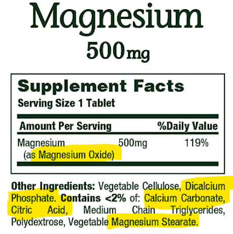 But that method isn’t what they’re feeding us. What they’re feeding us is Magnesium Oxide (nanoparticles) and other fun fillers: