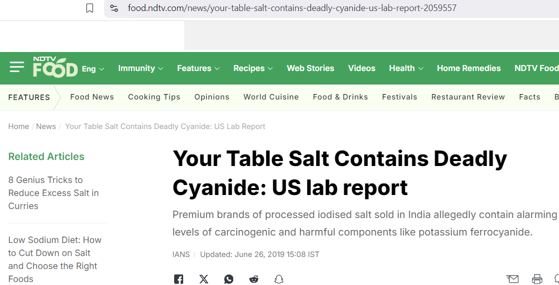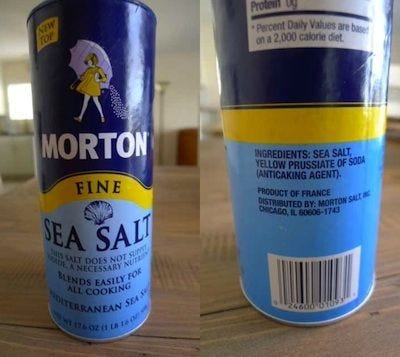 In this case it is called “Yellow Prussiate of Soda” - gosh, these names, Prussian Blue and Yellow Prussiate sound so beautiful, like poppy wall paint colors. I wonder why they don’t just call it cyanide since eating cyanide is harmless according to famous doctors and Google? Why bury the name of something so innocent? Regardless, don’t worry, science absolutely assures us it is safe because it’s an additive that the FDA has labeled GRAS. Apparently the only times it’s not safe is when you eat it: