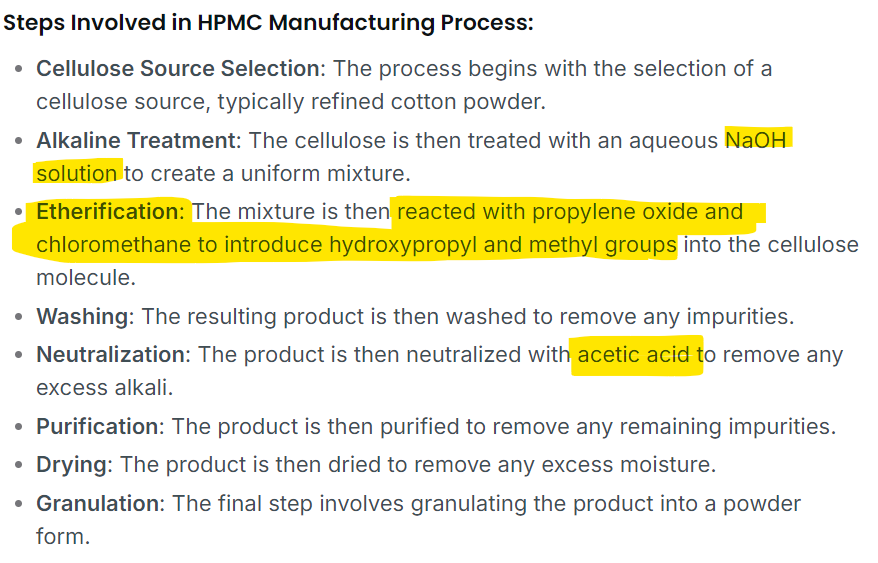 And that’s just to make the cellulose. To make it into a pill shell, you have to turn the cellulose into Hydroxypropyl Methylcellulose (“HPMC”).