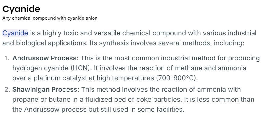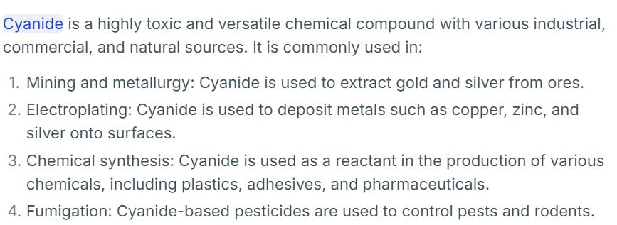 Why do you suppose cyanide, a deadly poison, would be needed to manufacture a supplement which gives us great health? Were there no other options that would suffice other than poison?