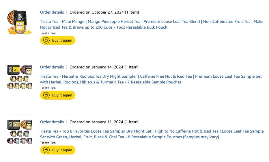 Learn to drink tea. Personally, I’ve always hated the stuff, so I started by purchasing a bunch of different samplers. I ended up liking the brand Tiesta and within 10 months, I ordered the full bag of the flavor I liked most, Mango Pineapple (yes, I too was surprised that I would ever order mango anything):