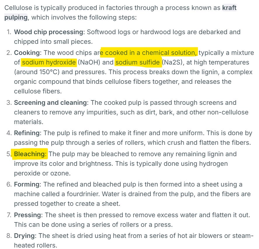 The pill capsule itself is likely either made from PFAS plastic or cellulose. And if you’re like me, you are under the assumption that cellulose is just wood pulp, therefore it’s not that bad, but this is not the case: