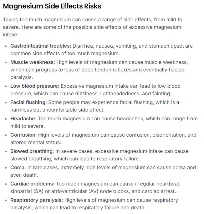 Speaking of the amounts we are taking: Do you know how much magnesium is in one cup of raw spinach? 24 milligrams. Do you know how much magnesium is in a popular supplement, such as this one, commonly advertised on Truth channels?