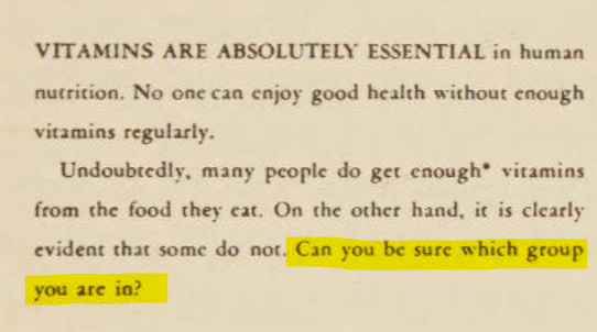 On the other hand, if you eat healthy, you don’t need chemicals to be healthy, so there really isn’t a market for these products to begin with which is exactly why people of the 1950s didn't want to take them and exactly why the fear campaign was essential. And if you eat healthy but something is causing you dis-ease, figure out what it is and stop it, not add to it.