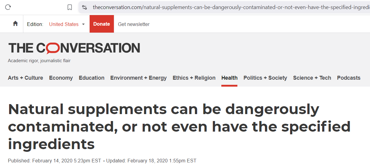 Let me give you another quote from the article, “the use of dietary supplements has been linked to adverse events, including stroke, acute liver injury, kidney failure, pulmonary embolisms, and death. One study found that dietary supplement use was associated with 23,000 emergency department visits in the United States each year.” - and that figure, 23,000, was doctors who correctly diagnosed their patient, how many more are there?!