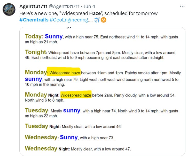 The haze has become so widespread that even the weather forecasters began using the new term “Widespread Haze”. Here’s my Twitter post showing my Michigan Haze weather: