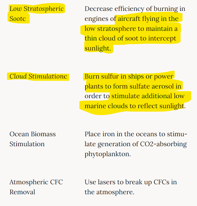 “Low Stratosphere Soot”, would be performed by decreasing the efficiency of the engines. Wait a second… does that say what I think it says?