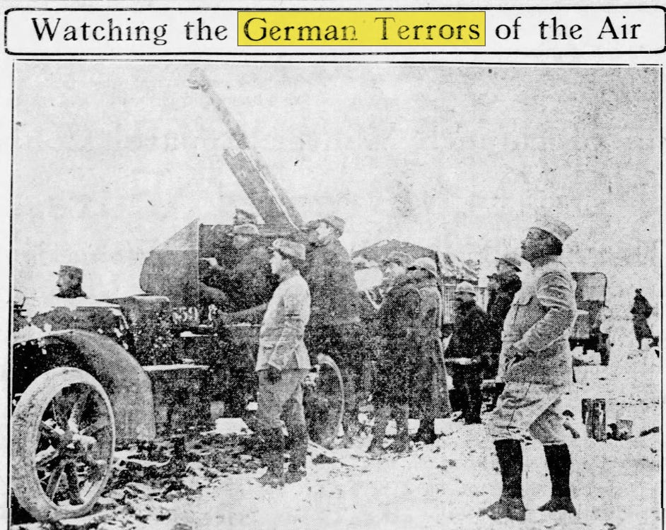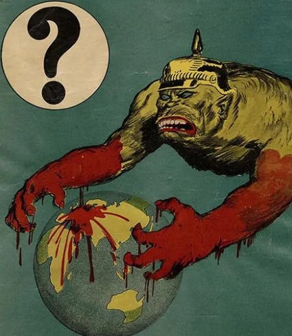 Just in the year 1915, just in the state of New York, the phrase “German atrocities” was used in the newspapers over 1,700 times. This was accompanied by additional headlines promoting “Evil Germans”, “German Violence”, “German Terror” and similar.