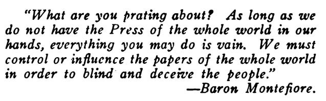 Honest journalists who spent time in Germany or Russia, upon returning to the United States, wanted to publish content in the New York papers to dispel inaccuracies in the presses and, just as importantly, broadcast the Juw’s role in the war, which they had just witnessed with their own eyes. However, editor after editor declined to accept any content unfavorable toward Juws. The same papers who refused the articles offered to accept content on any other subject. To take it a step further, in the American Hebrew, Juwish writer Herman Bernstein wrote about the Department of Justice bringing content to him for his review.