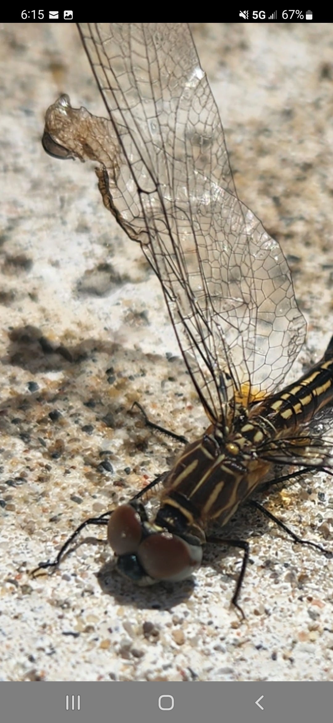 Again, this dragonfly has no “damage” other than something causing his delicate wing to seemingly singe: