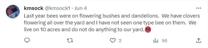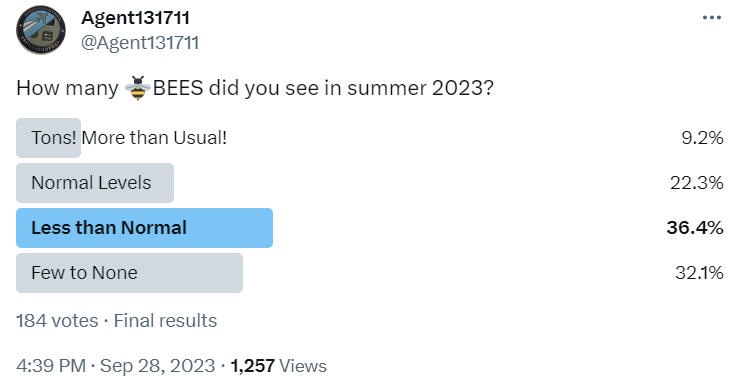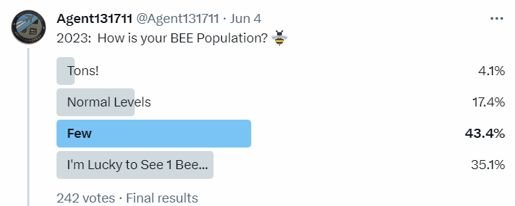 On Twitter, in June 2023, I asked, “How is your Bee Population?”: