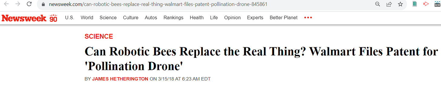 2018: Wal-Mart quietly files a patent for a POLLINATION DRONE: