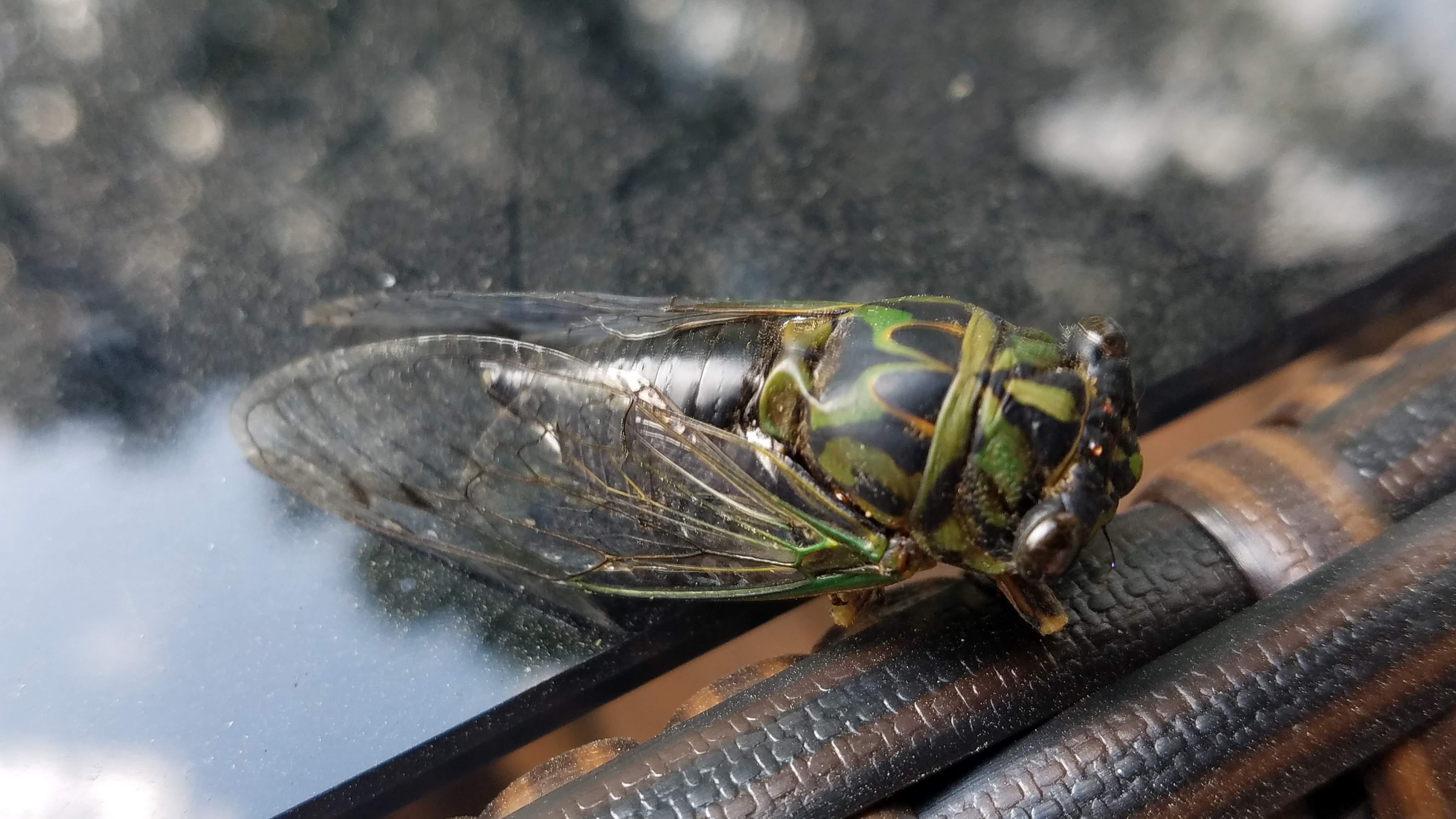 Perfectly healthy-looking Cicada that fell from tree during heavy spraying:
