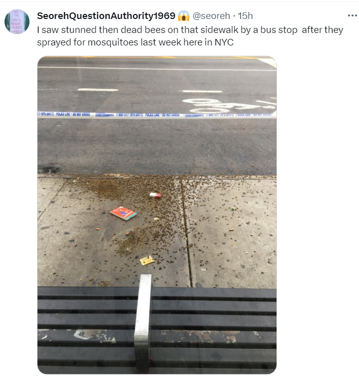 Another Twitter reply, shown below, referances the September 2023, New York MASSIVE spraying campaign to “kill mosquitoes”: