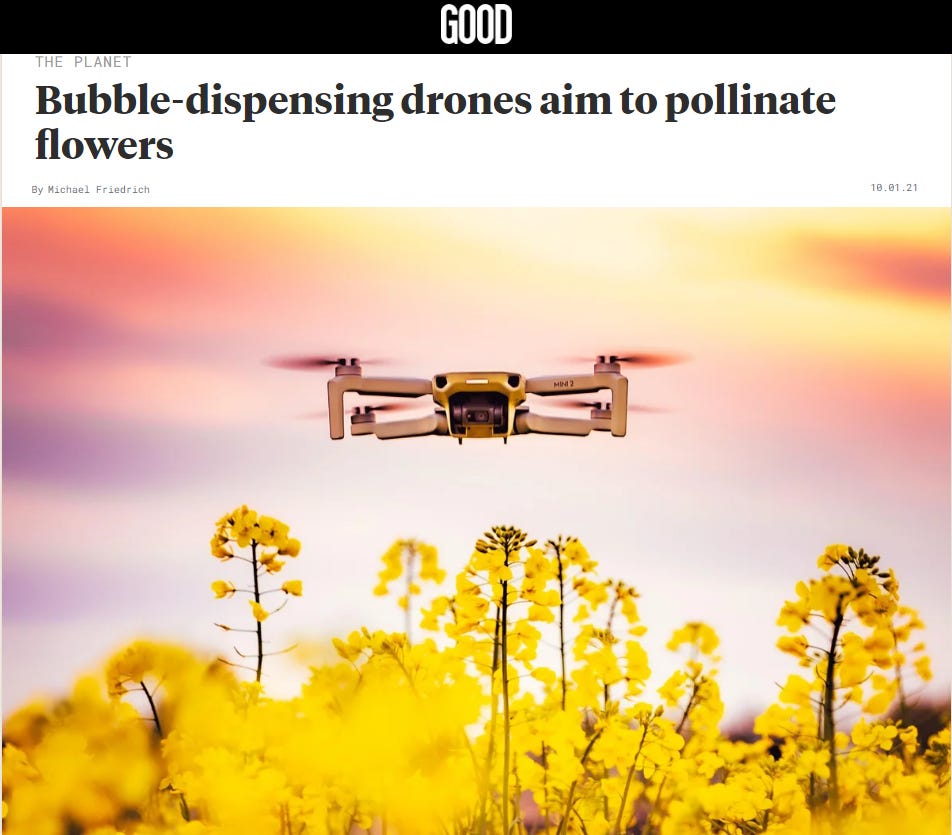 2021: buzz off robots https://www.wsj.com/articles/buzz-off-bees-pollination-robots-are-here-11625673660