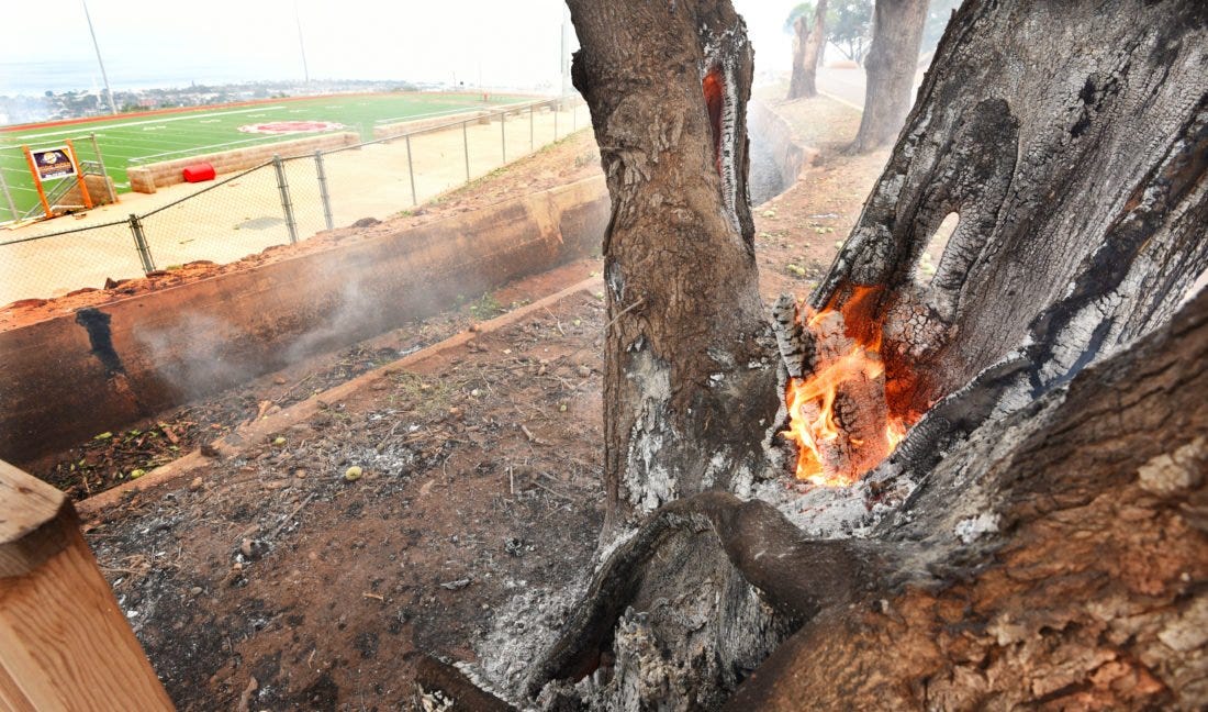 The chemtrail program began being tested in the late 1990s in the USA. The contents of the aerosol spray are heavy metals (and more, but primarily metals). When it rains or snows, these metals come down at "sky high" levels, pun intended. They sink into the ground, killing the microorganism and making the soil dry. Grasses die and the dead foliage becomes brittle. Trees and plants absorb these metals through their root systems. Not only does it slowly kill the plant, but trees also become highly flammable because their core is loaded with highly flammable particles. You may have seen pictures of trees burning from the inside-out.