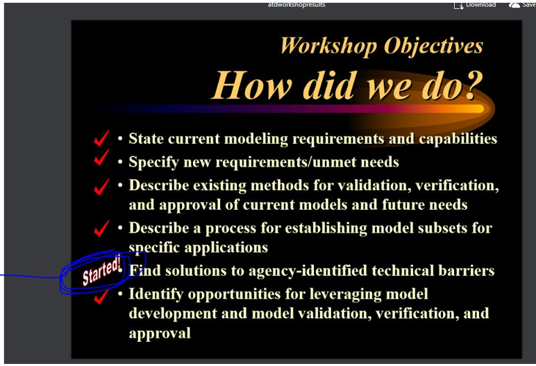 The screenshots below were from their slideshow which has since been so scrubbed that I cannot pull it up, but thankfully I saved these slides to my pc. In the section titled Workshop Objectives they state that they have “Started” the process: