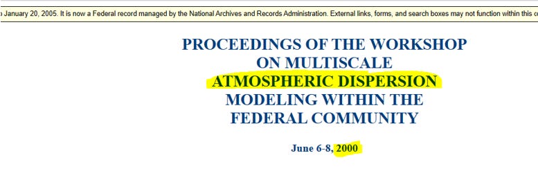 In the year 2000, eight years after the United Nations Agenda 21/ The Wildlands Project was agreed to, the government met to discuss "Atmospheric Dispersion". As unbelievable as it may sound, in 2001 a “Special Project” presentation was prepared titled: