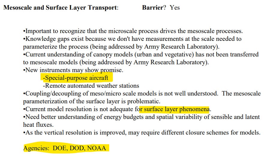 As I was saying; In another section regarding “Surface Layer Transport” they reference the need for “special purpose aircraft” and “remote weather stations”: