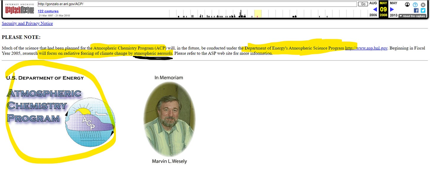 “Much of the science that had been planned for the Atmospheric Chemistry Program (ACP) will, in the future, be conducted under the Department of Energy's Atmospheric Science Program. Beginning in Fiscal Year 2005, research will focus on radiative forcing of climate change by atmospheric aerosols. Please refer to the ASP web site for more information.” (http://www.asp.bnl.gov.). …Wait a second, “radiative”? You mean the suns rays? Well I’ll be damned, that is exactly what this word means.