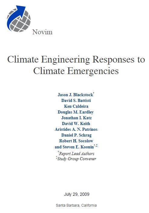 Today we will be discussing an absolutely shocking 66-page document from 2009 titled, “Climate Engineering Responses to Climate Emergencies”. Let’s reread that title again, because it’s pretty telling: