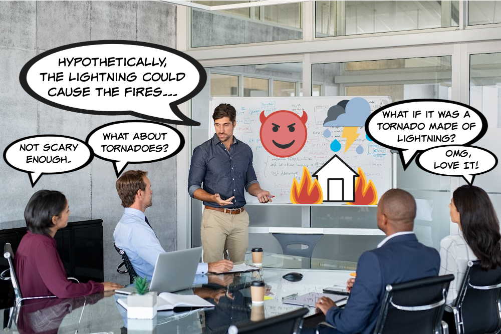 Basically, it’s a bunch of patent holders and bought-and-paid scientists spitballing, “What weather chaos could happen that will require use of our patents?”.