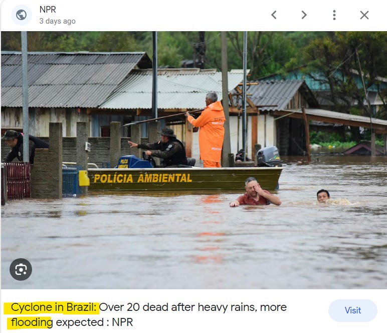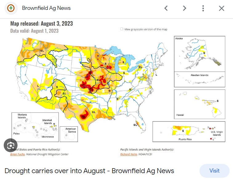 One “class of climate emergencies” that they mention is, “Severe and prolonged droughts”, large storms and heat waves. We have witnessed exactly this in 2023: