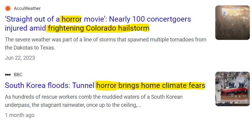 Shortly thereafter, they point-out that they can’t just use any climate emergency, because people might not respond to it with alarm.