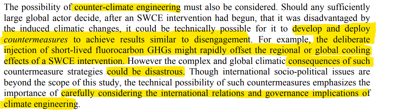 And if you didn’t think this was insane enough already, they even have GeoEngineering “Countermeasures” planned (AKA: MORE GeoEngineering) to combat a DISASTER they might cause. They don’t really outline how exactly they plan to undo a manmade disaster created by all their ideas, but they want you to know that they think they can probably stop the damage they cause: