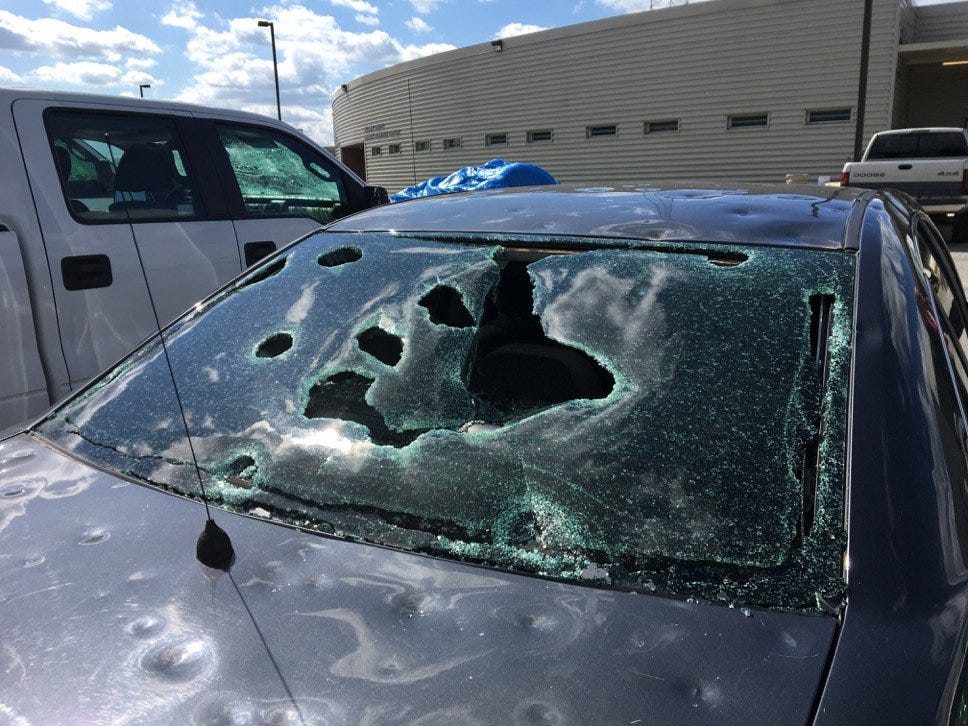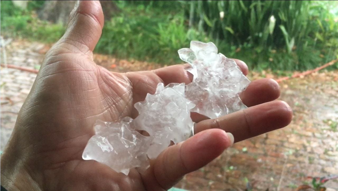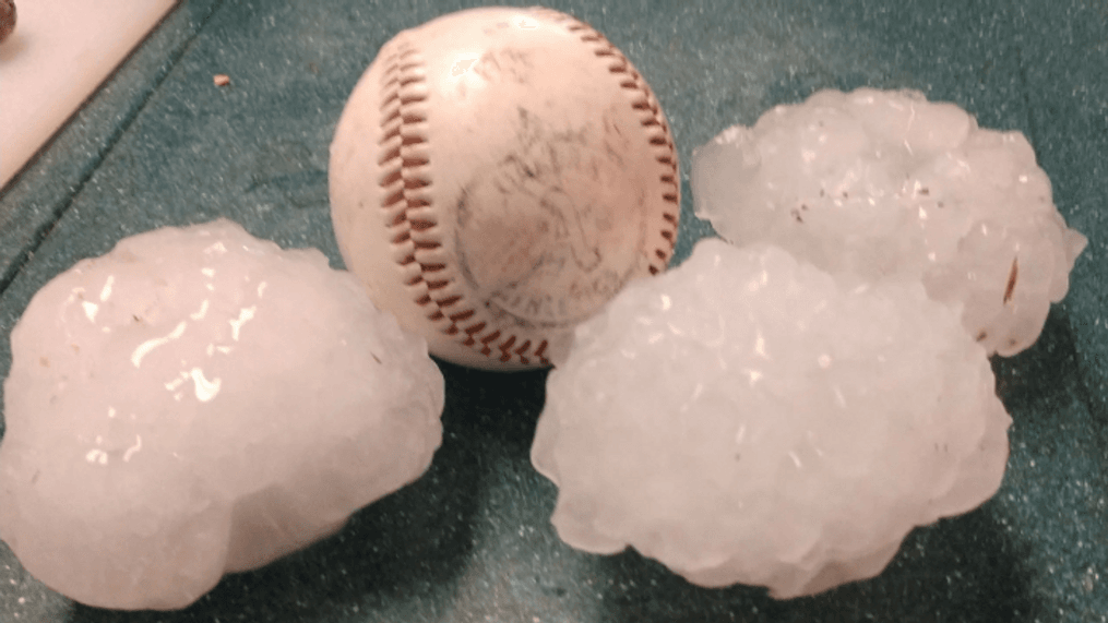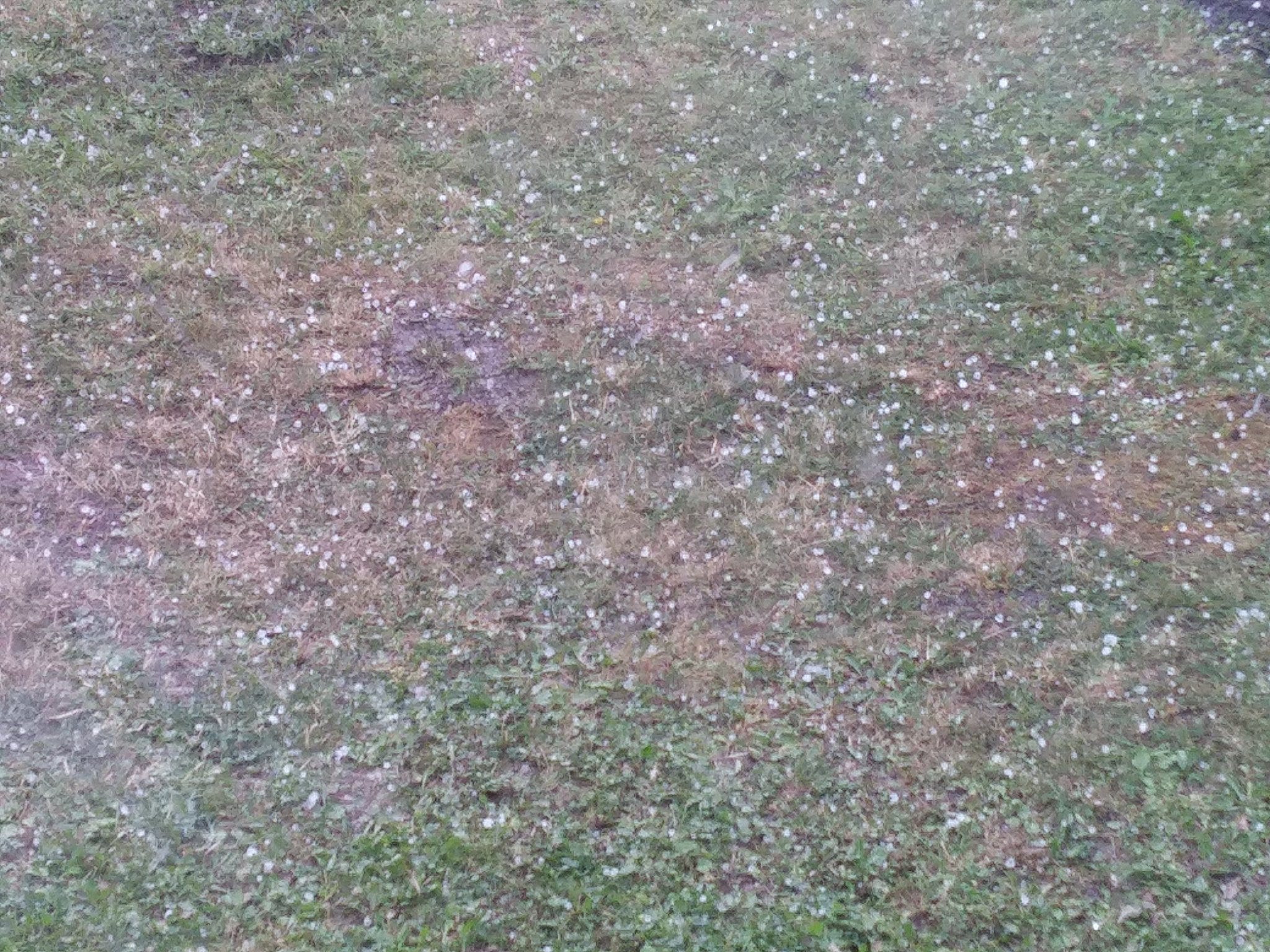 Tennis-Ball-Sized hail in Missouri. Note the green grass in the background: