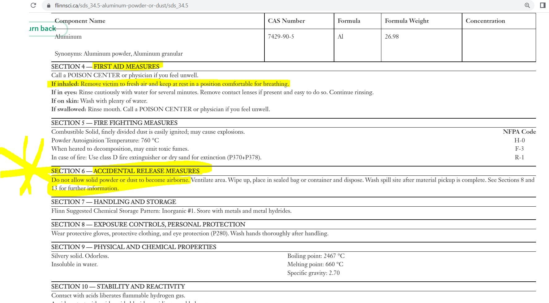 Cloud Seeding ingredient "Aluminum Powder" manufacturers Safety Sheet states "DO NOT ALLOW TO BECOME AIRBORNE", also it's toxic to eyes, skin and respiratory system (so let’s spray it in the air!)