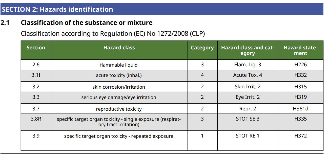 Category 1 means it can inflict permanent damage with a single exposure. Category 2 means it can inflict permanent damage with repeated or long-term exposure: