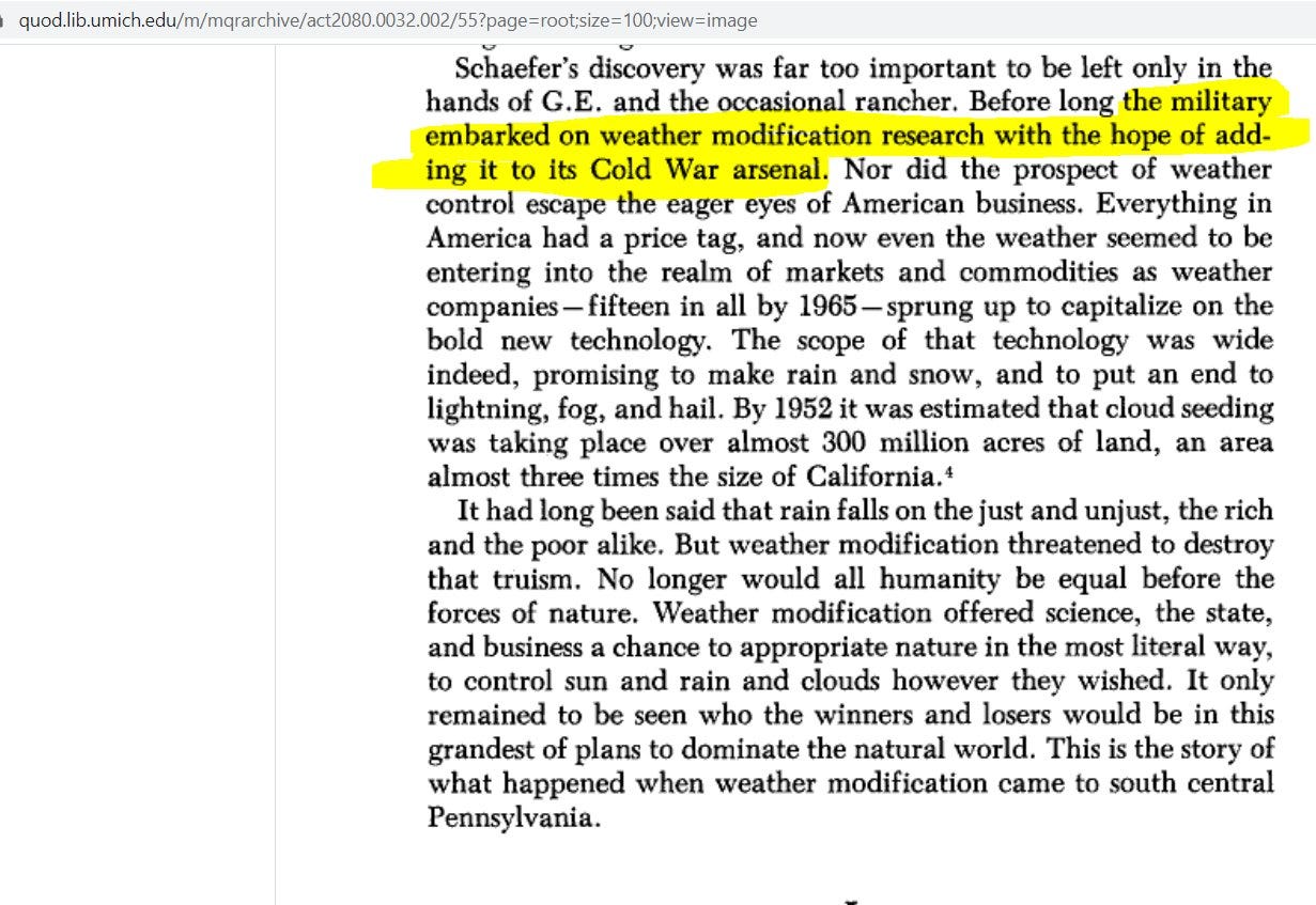 As stated in decades of US military and government documents, Seeding not only makes rain but also make fog, snow or hail, because you know, sometimes people really need more snow, so it’s good to have the capability….