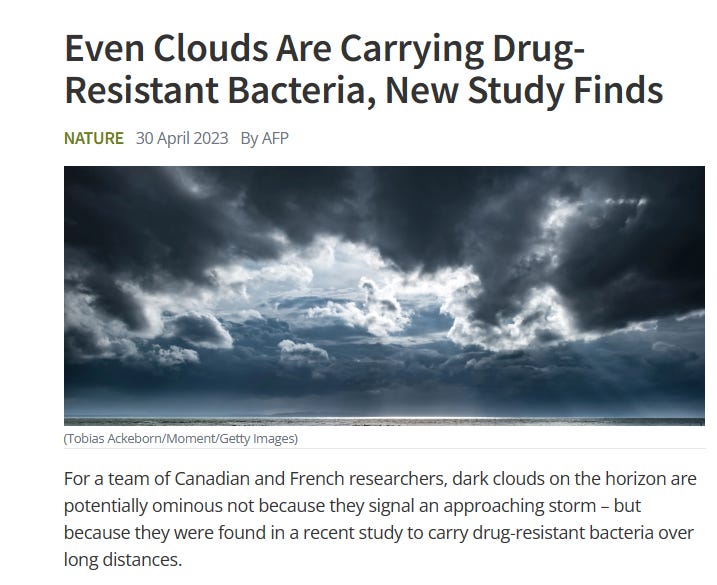 Moving along, clouds are now carry pathogens / biological agents, just as they planned;