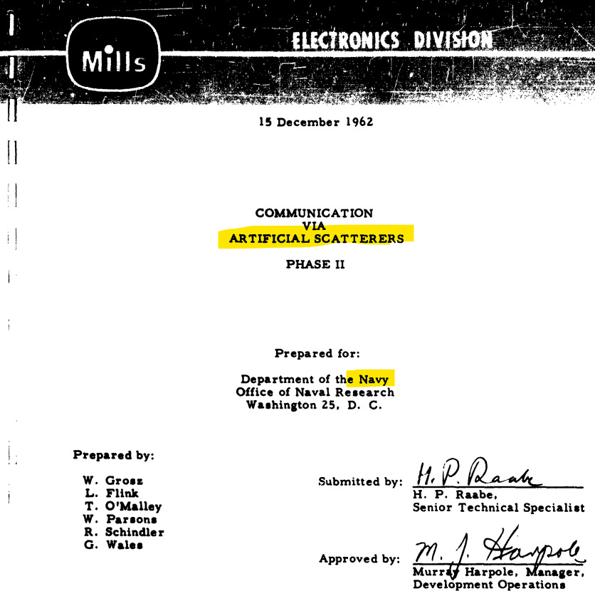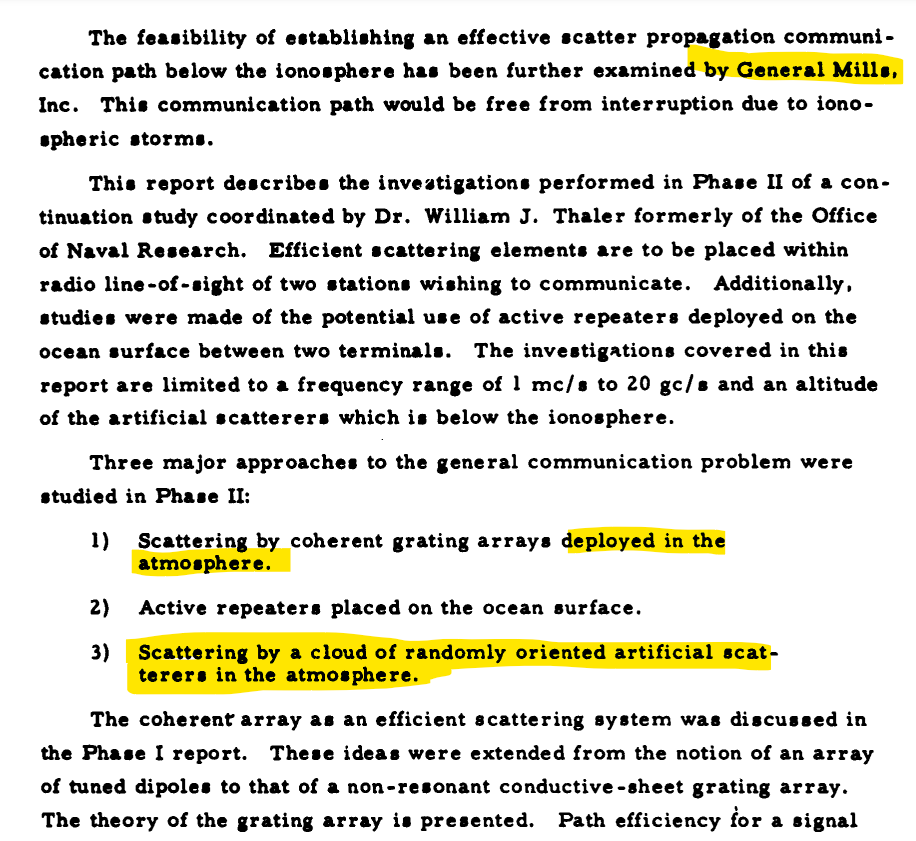 1962: General Mills was now also working with the Navy regarding military communications involving the ionosphere. In case you missed it; like a promiscuous woman, they were already in bed with the Army, now they’re also sleeping with the Navy. That’s a whole lotta men in uniform: