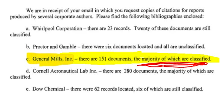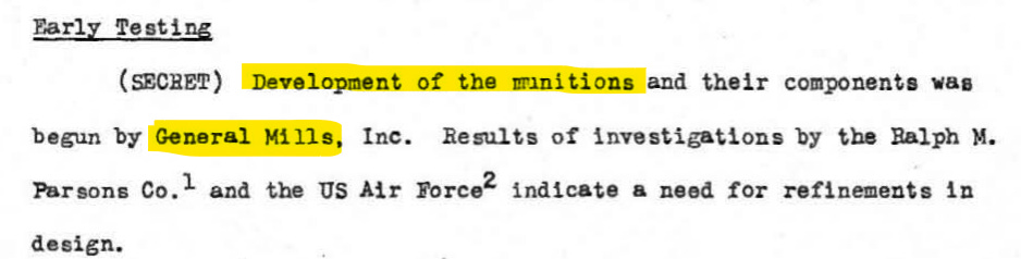 I find it fascinating that nearly everything related to General Mills history of military contracts and Weapons of Mass Destruction is so heavily censored. Anyway, let’s get back to the timeline.