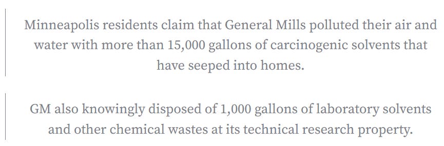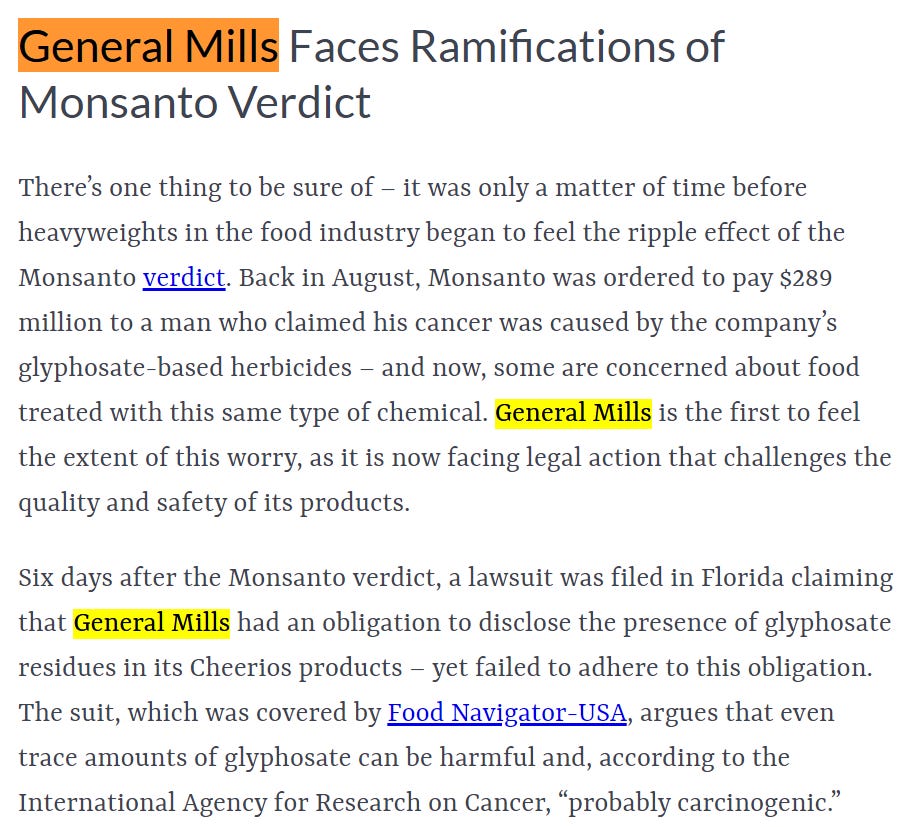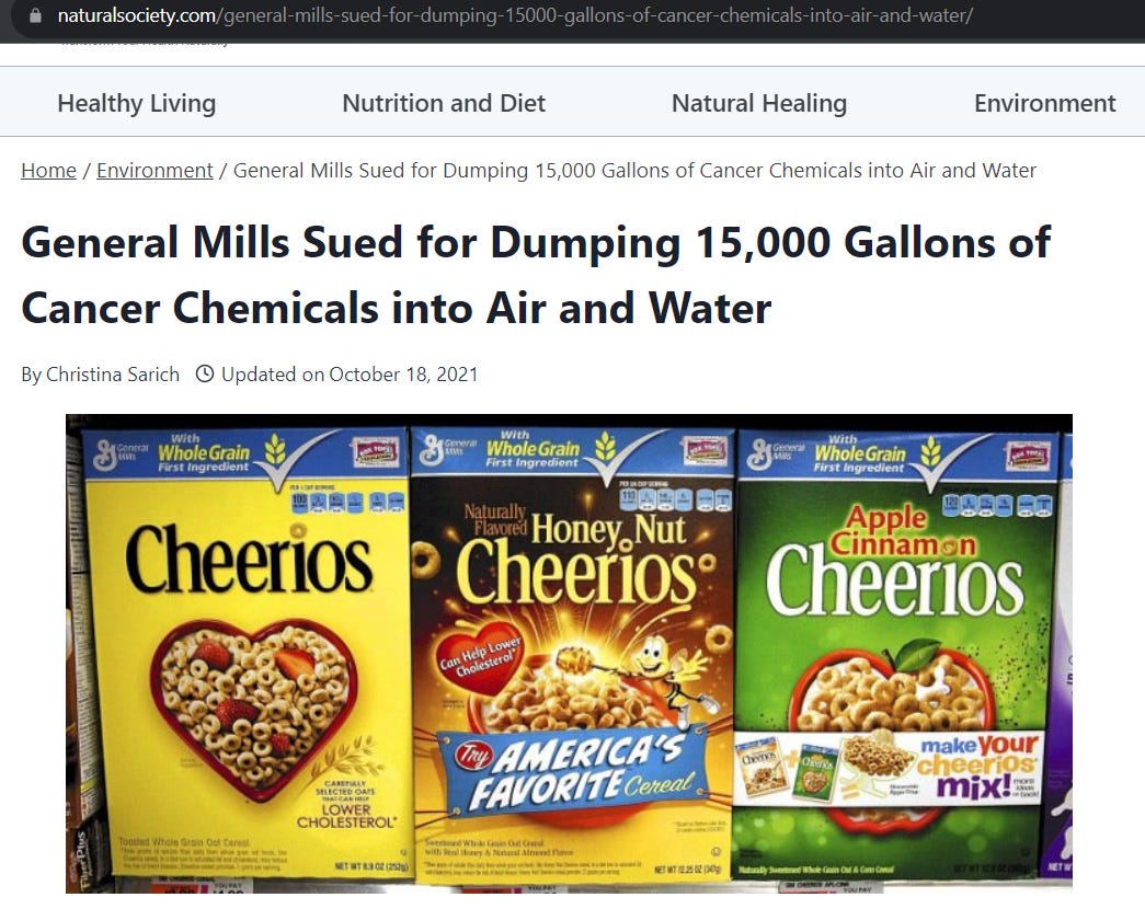 2021: Despite selling off it’s chemical division, a lawsuit shows that General Mills clearly still had access to plenty of toxins: