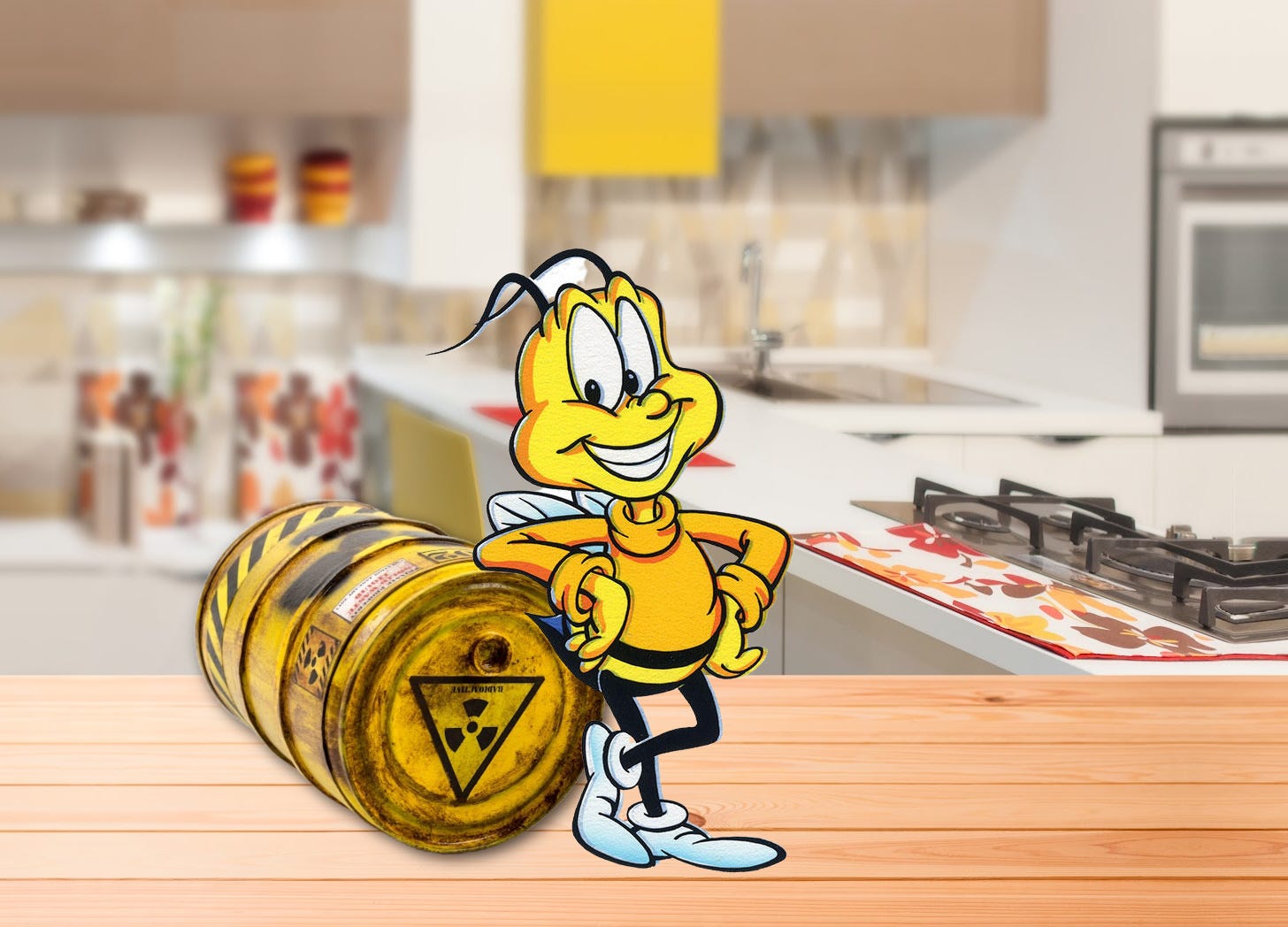 Photo of the Cheerios Bee with a drum of pathogens. It’s good for your heart and might lower cholesterol.