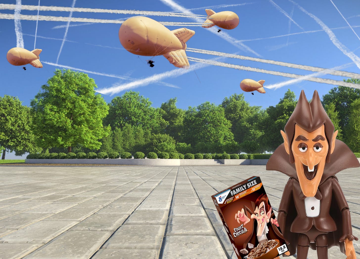 Real photo of Count Chocula with Chemtrail Spy Balloons made by General Mills. Hey, if NASA can claim CGI is real, then I can claim this is real. Like Elon Musk once said, “You can tell it’s real because it looks so fake”, or something like that.