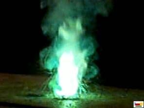 Barium, when released into the atmosphere, can be a greenish color if burned / ignited.