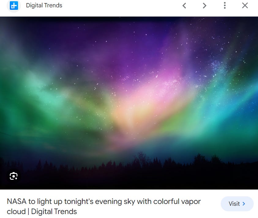 2021: NASA released, “Two of the payloads of barium vapor clouds in the upper atmosphere”
