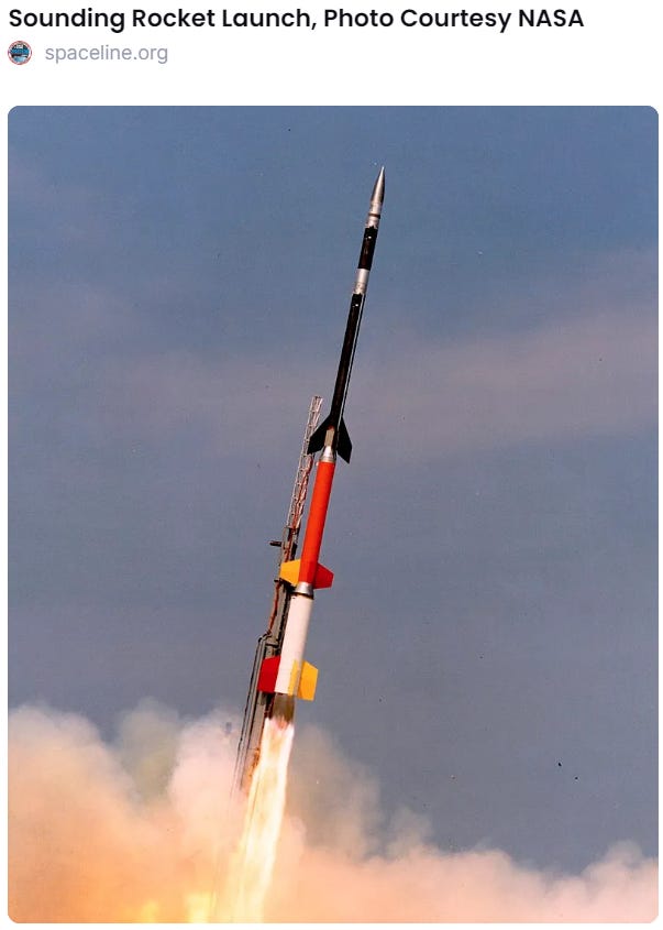 In the first experiment NASA’s Wallops Flight Facility, located in Virginia USA, launched a sounding rocket carrying a 157 pound (71.8 kg) payload: