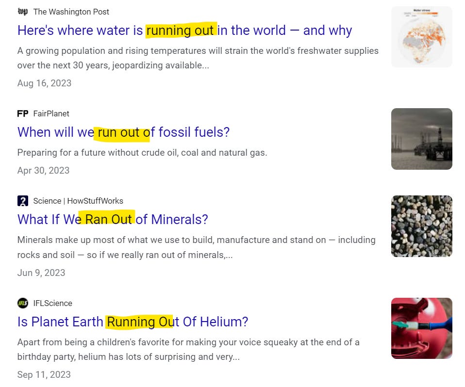 Headlines from 2023; we are running out of everything, which means it must be rationed: