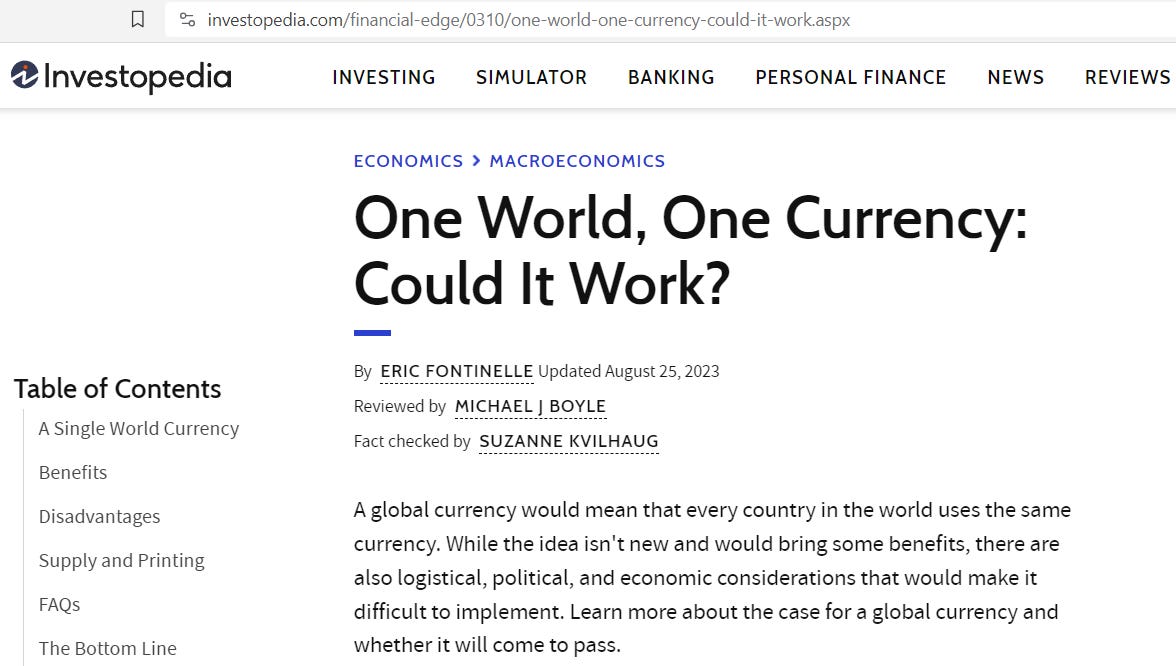 To establish a One World Government/New World Order with a unified one-world monetary system.