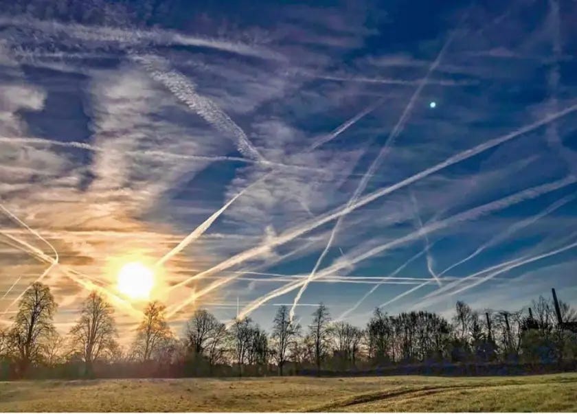 When Covid lockdown occurred and airline traffic dropped down to nothing, “the lines in the sky” didn’t decrease one bit. If the argument is that the lines are the increase in air traffic, this fact cannot be avoided: