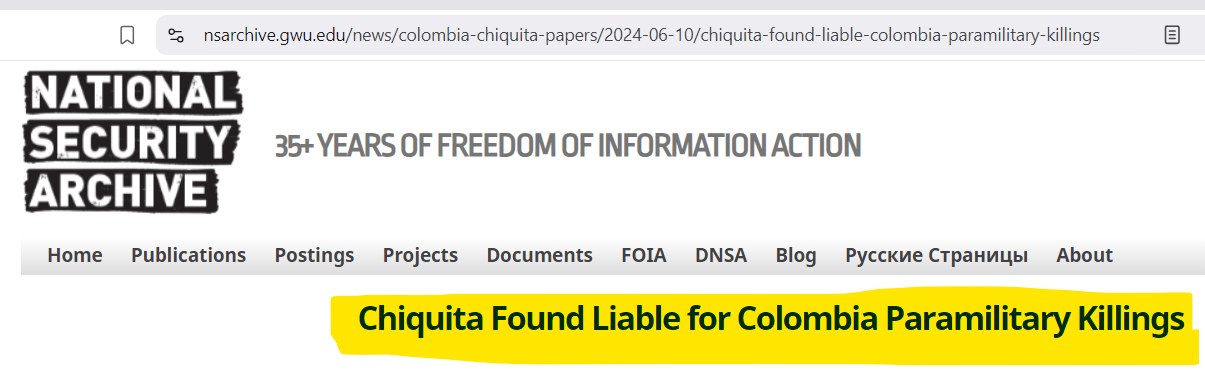 Yep, that Chiquita, the banana company. And it would turn out that the banana people weren’t only involved in produce, no sir, they were deeply embedded in other issues. Wanna know what they have been involved in?