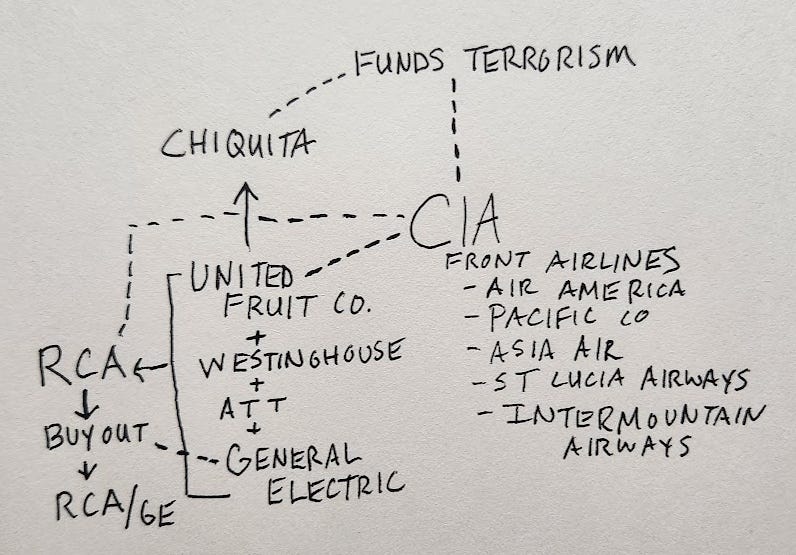 Who was helping Chiquita (formerly United Fruit Co) fund terrorism? You guessed it! The CIA.