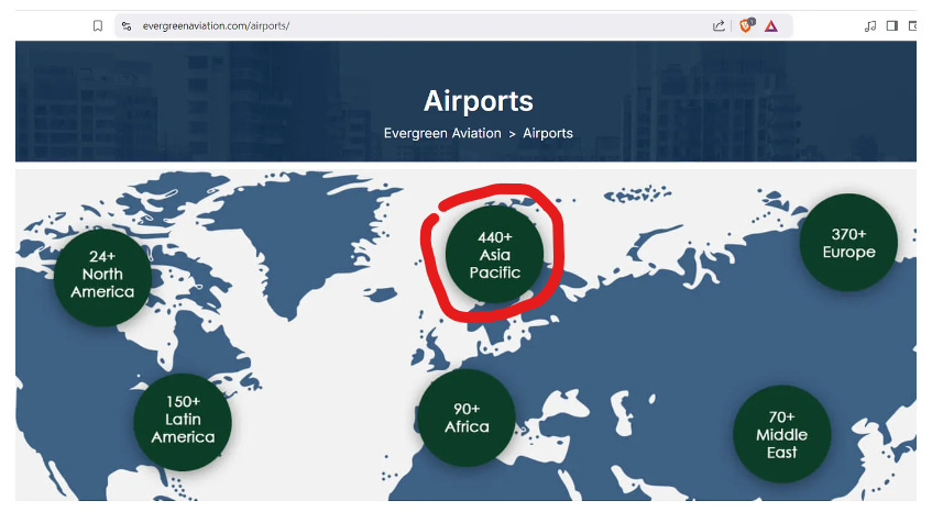 To make the whole thing even more peculiar, Evergreen Helicopters began in 1960. Evergreen Group (Evergreen-China) began on September 1, 1968. The CIA merged with Evergreen Helicopters in 1975 and had the Skunk Works (Lockheed) secret weapon development contracts, this was when Evergreen-CIA was officially born. In 1990, Evergreen-CIA had revenues of $477 million and one billion dollars worth of planes. During this same time, Evergreen-China was expanding into air cargo and hotels. In 1998, Evergreen-China merged with GE to create Evergreen Aviation Tech and GE Evergreen. Now this Evergreen-China company is doing sh*t for the military and repairing and modify Boeings… which is literally the exact same thing that was happening with Evergreen-CIA at Pinal Airpark in Arizona during the identical years… but these entities aren’t related at all? What is Evergreen-CIA doing with all of these overseas airports?