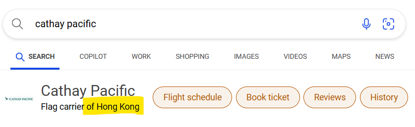 Who is Cathay Pacific? China, specifically Hong Kong:
